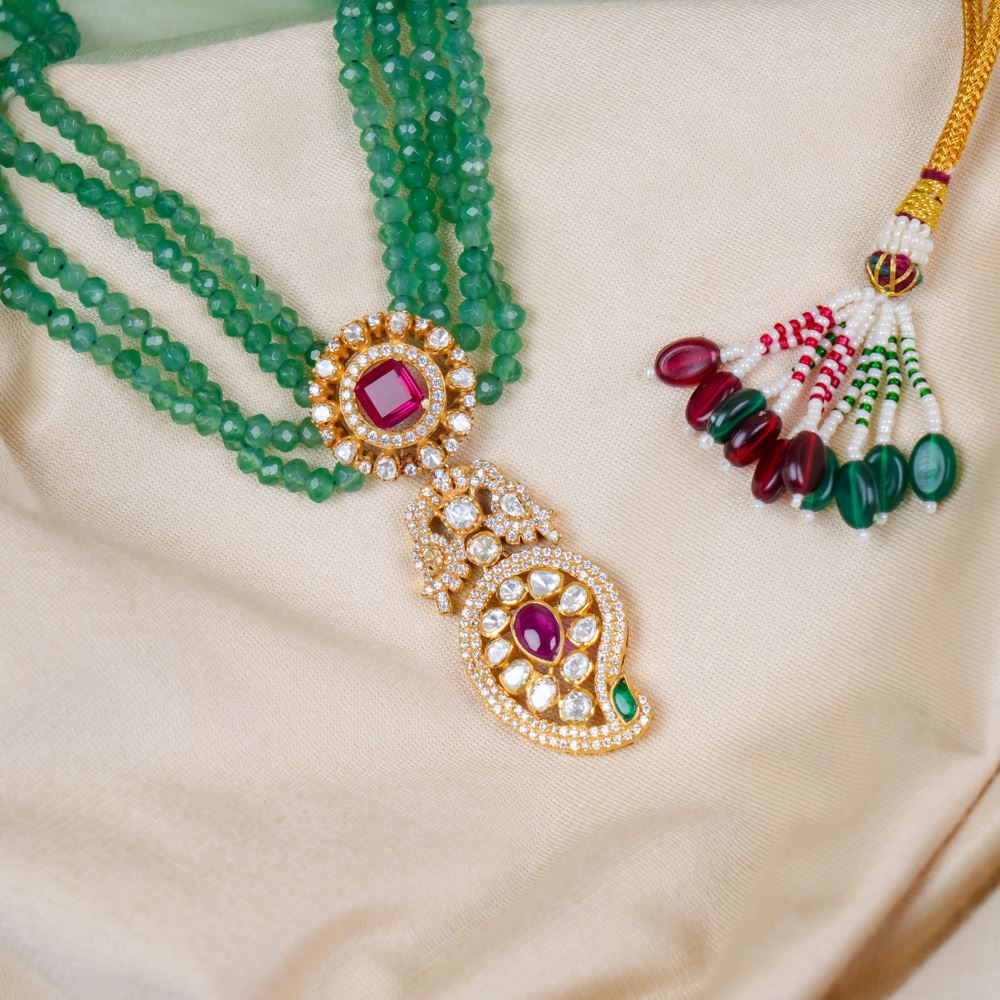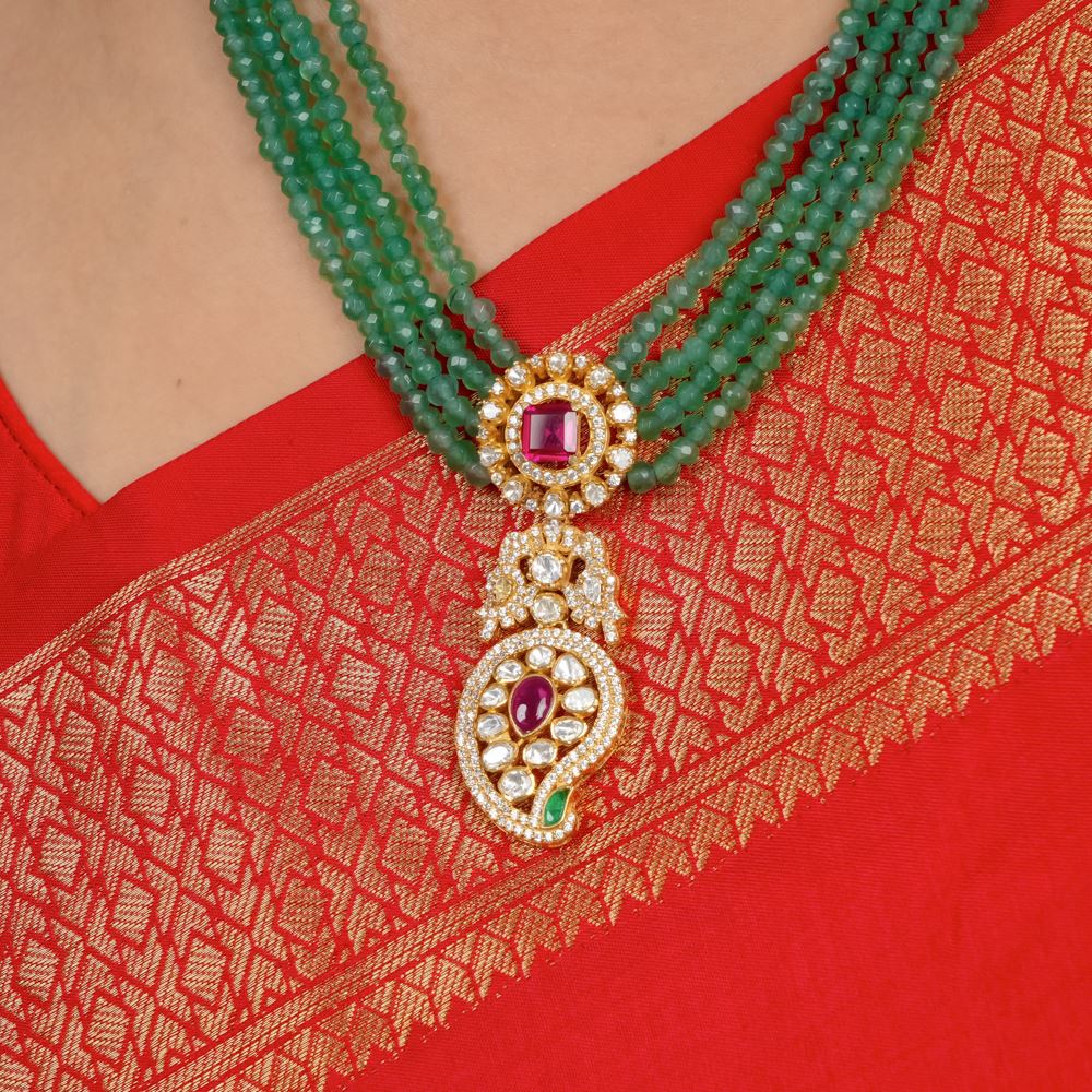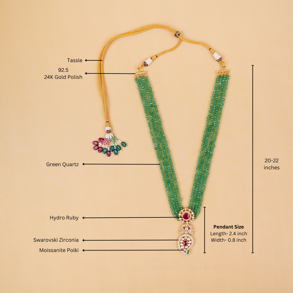 4 Layer Green Quartz Necklace With Moissanite Polki Pendant