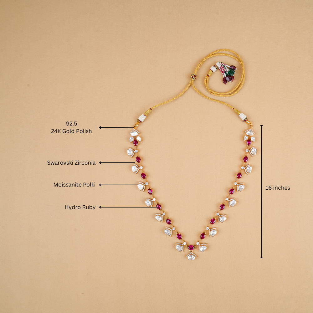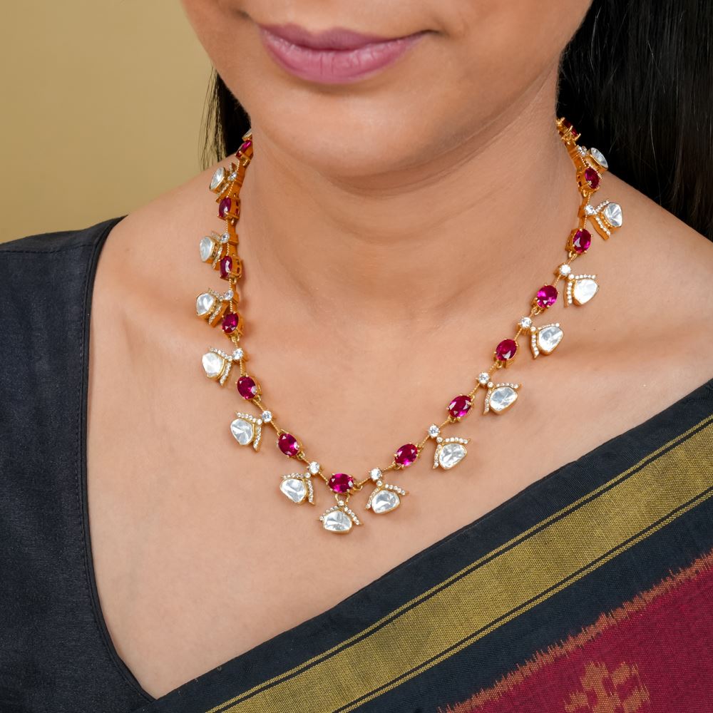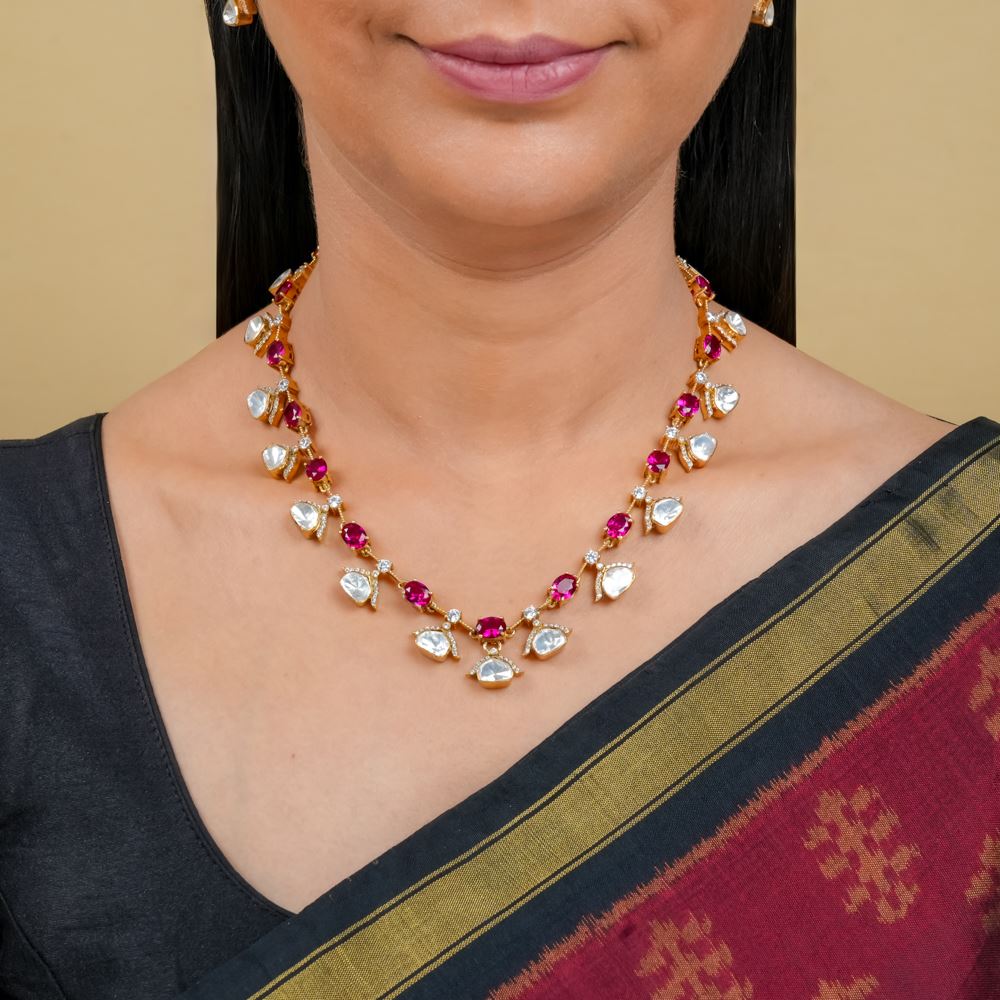 Dazzling Moissanite Polki With Hydro Ruby Necklace