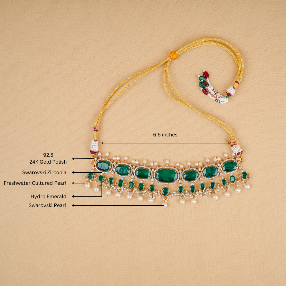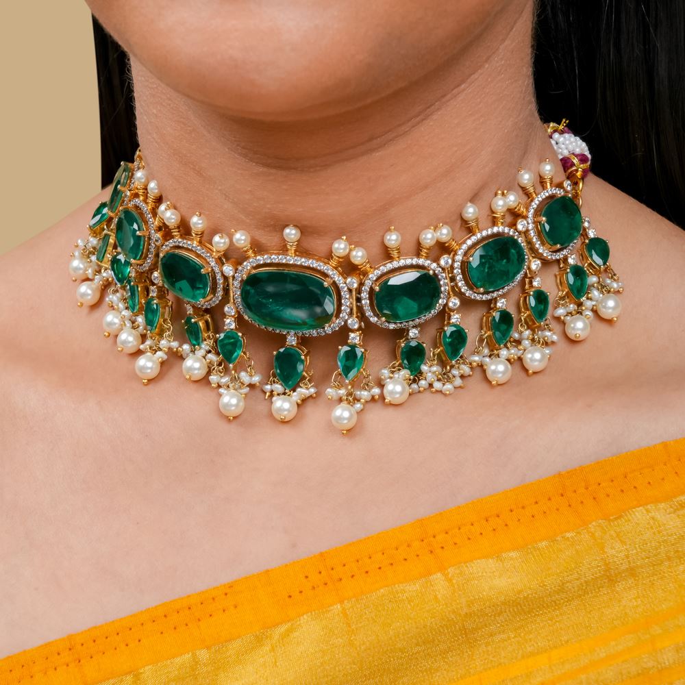 You need no mirror nearby to appreciate the reflection of this beauty. Adorned in hydro emerald, and Swarovski zirconia, it stands out as one of the iconic pieces of jewellery.