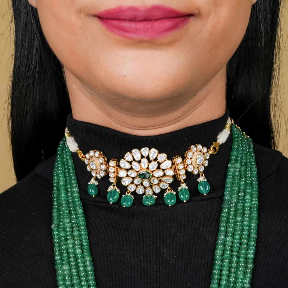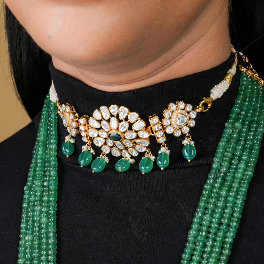 Moissanite Polki With Green Onyx Choker
