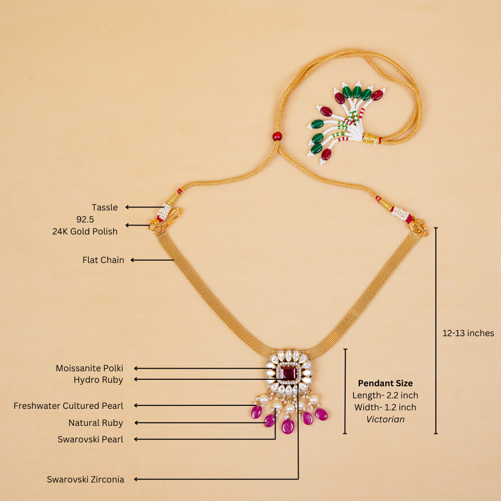 Stones: Natural Ruby, Hydro Ruby, Moissanite Polki, Swarovski Pearls, Swarovski Zirconia, Freshwater Cultured Pearls