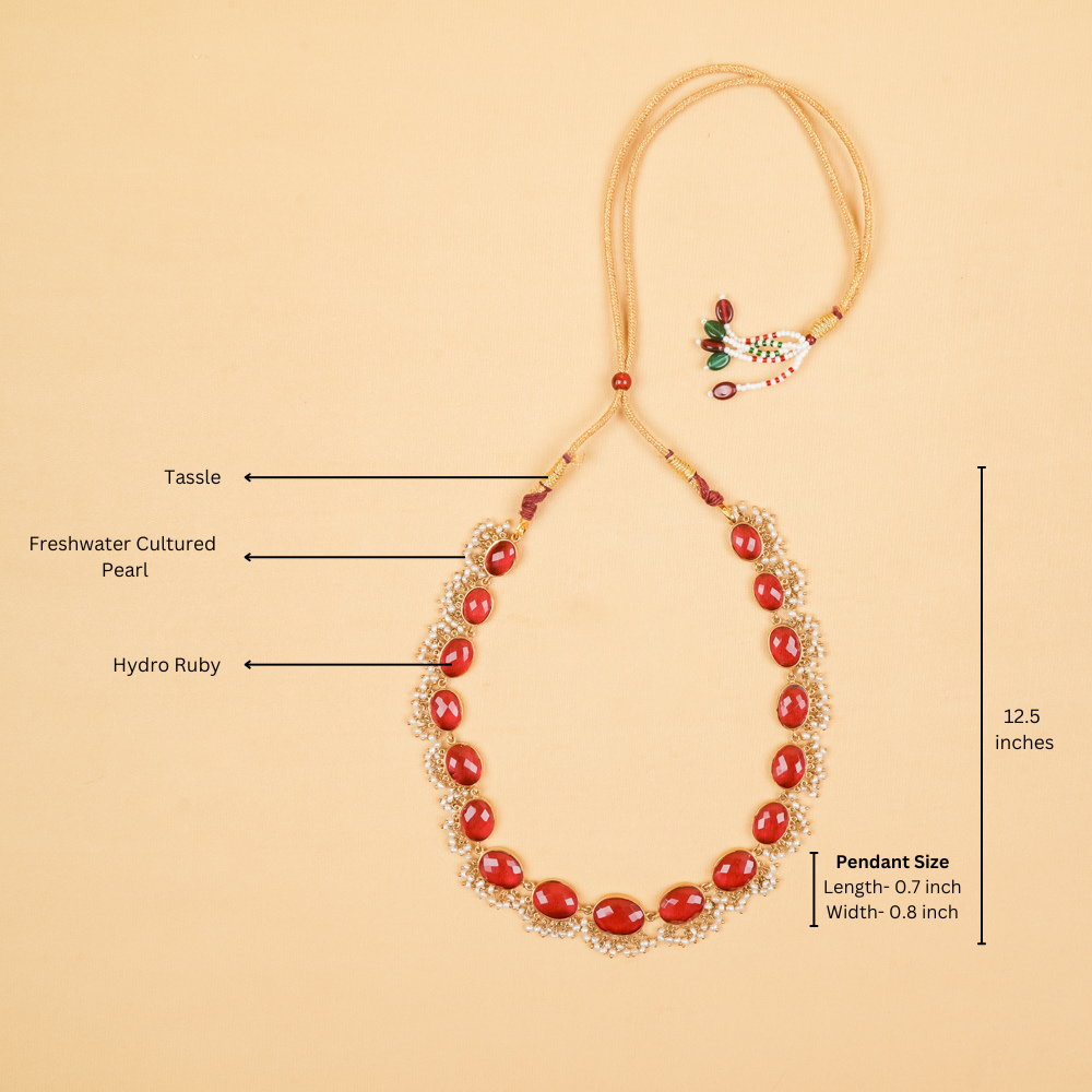 Don't you love how this necklace transcends trends? Combining hydro rubies and delicate freshwater pearls crafted in silver 92.5 creates a timeless elegance. It's the perfect accessory to make a radiant statement at any soiree.