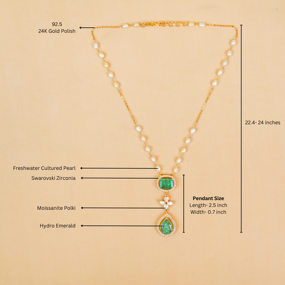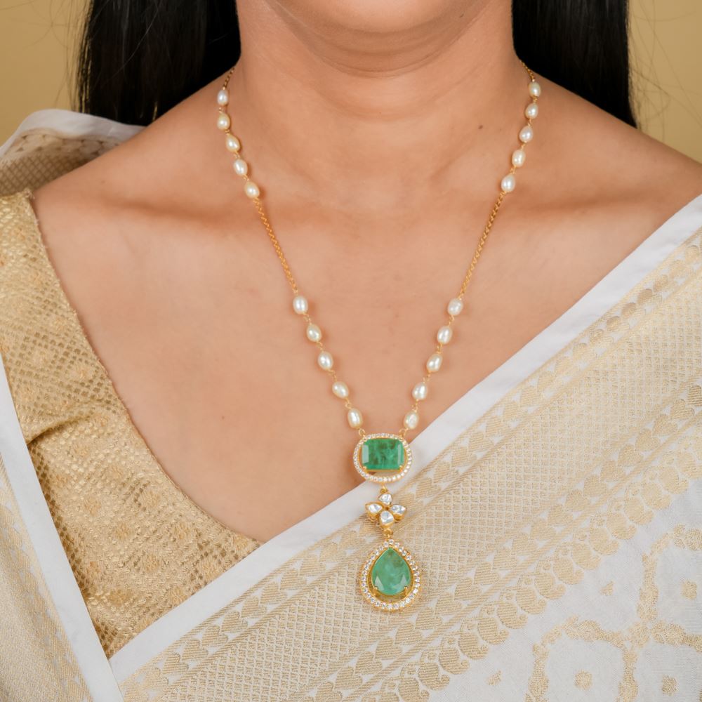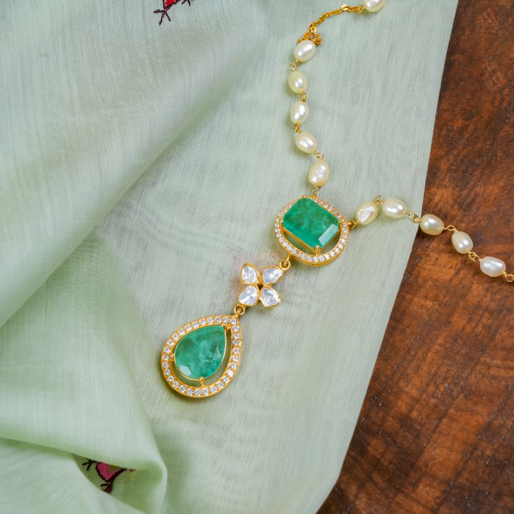 Stones: Hydro Emerald, Moissanite Polki, Freshwater Cultured Pearls, Swarovski Zirconia