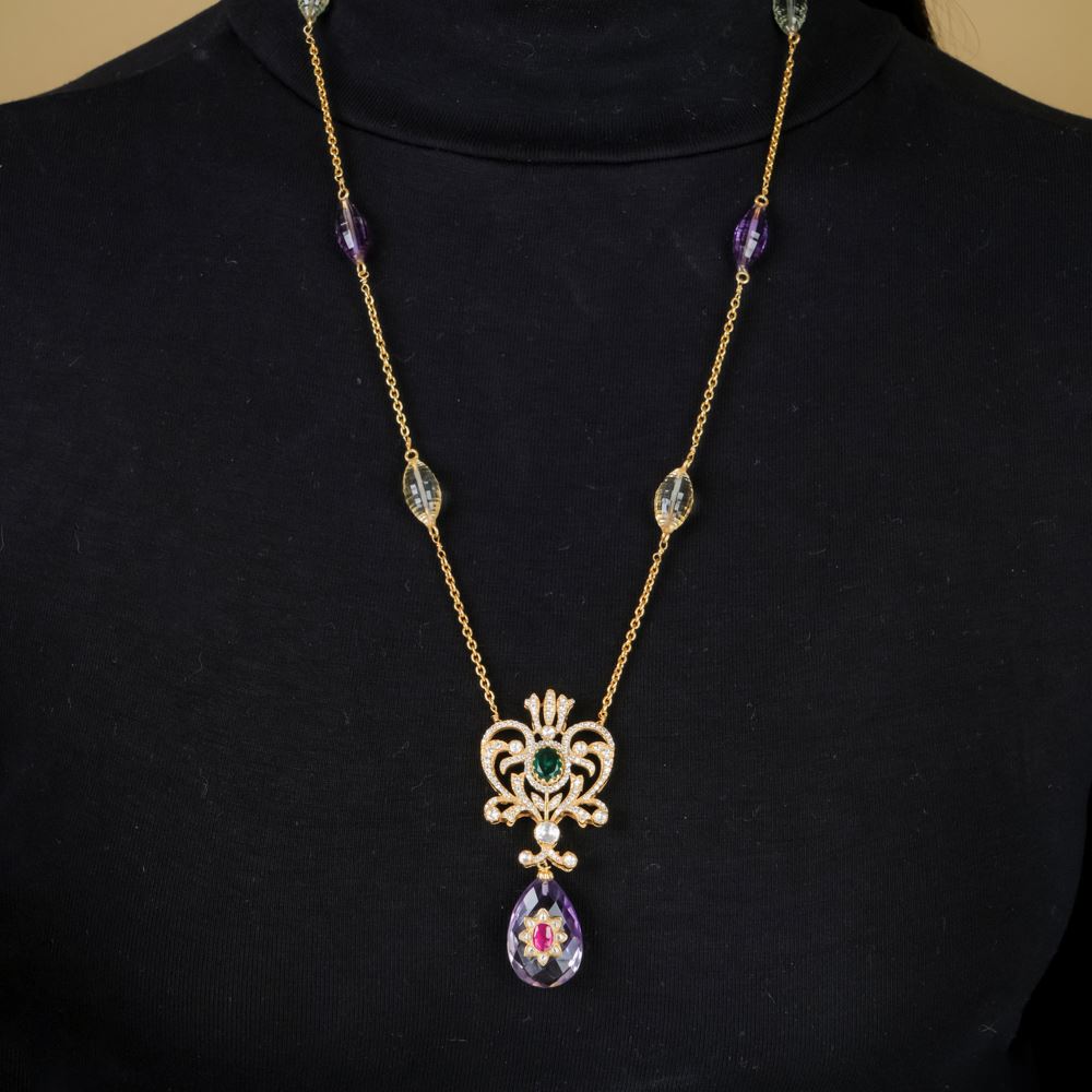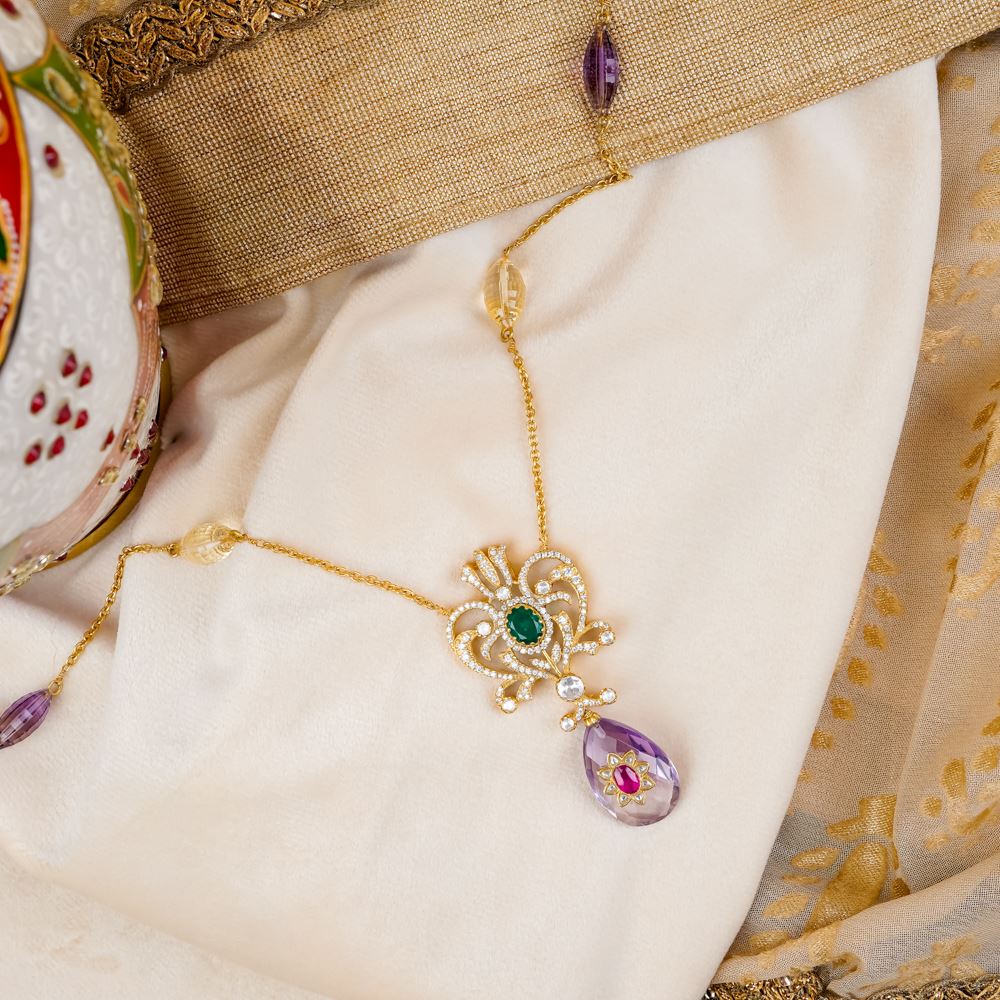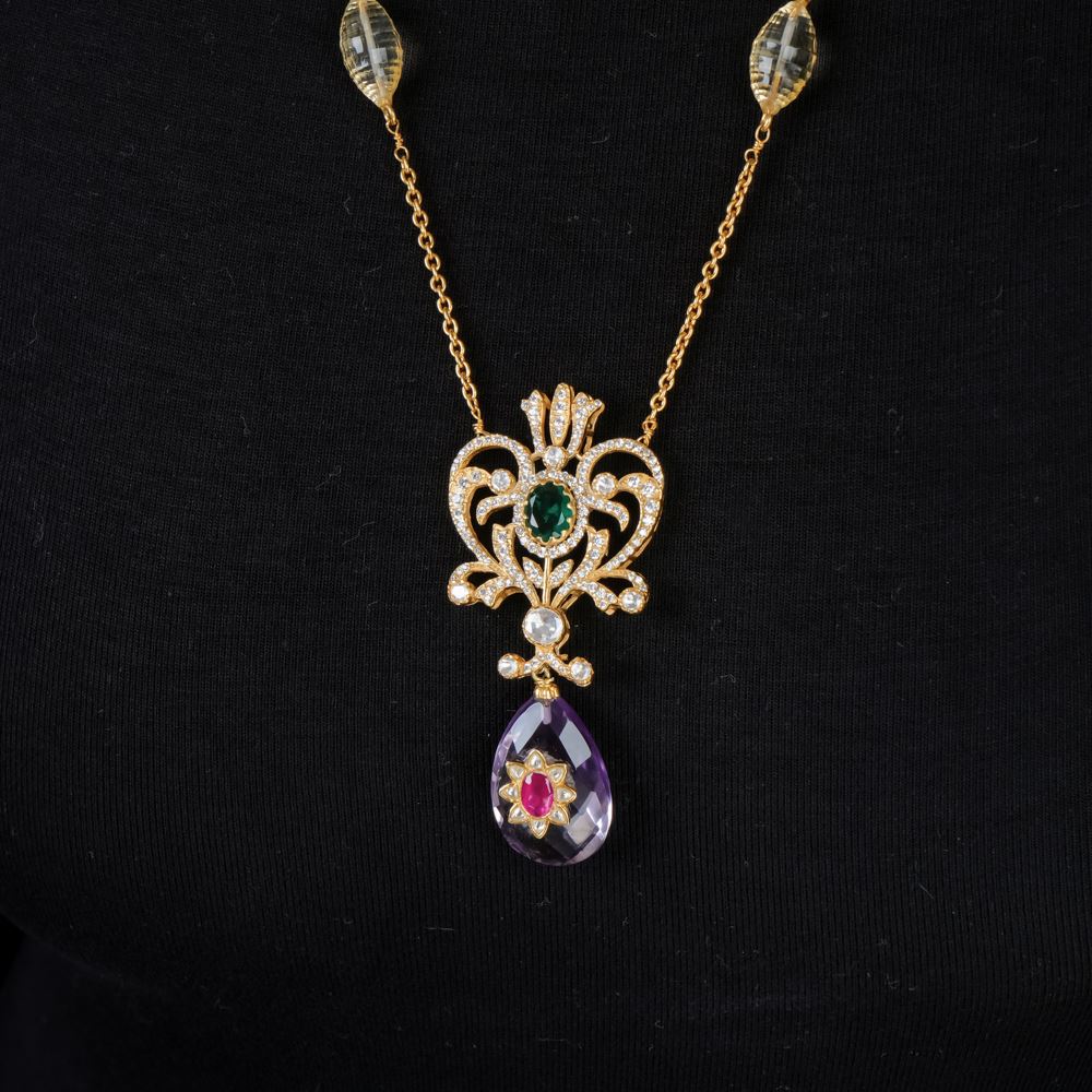 Stones: Hydro Emerald, Amethyst, Citrine, Moissanite Polki, Swarovski Zirconia